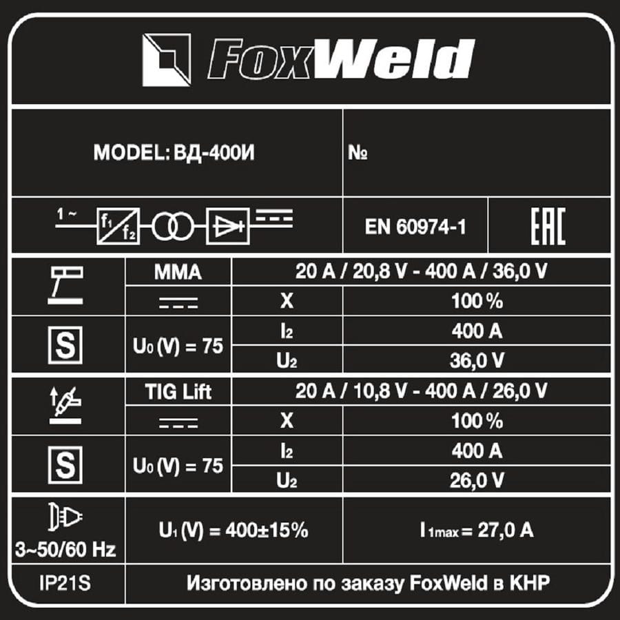 Сварочный аппарат Foxweld ВД-400И
