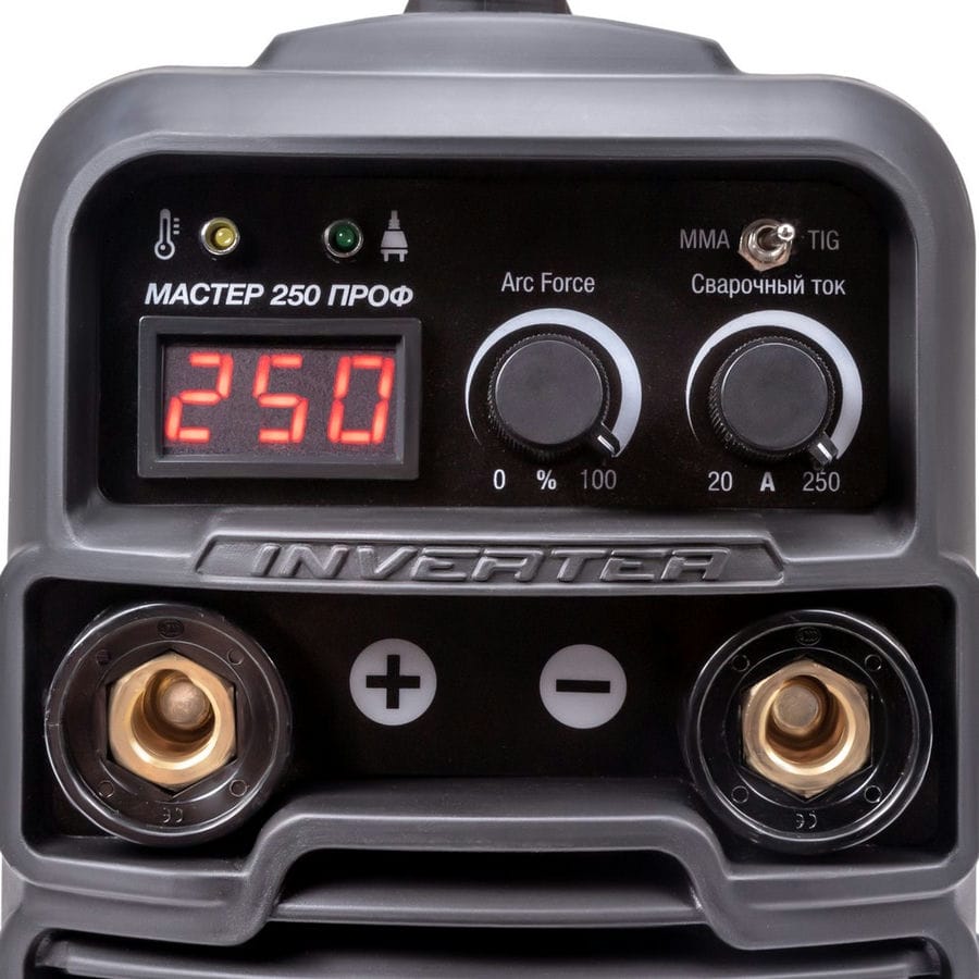 Сварочный аппарат инверторного типа FOXWELD МАСТЕР ПРОФ 250 предназначен для ручной дуговой сварки (ММА) любыми типами электродов с дополнительной полноценной функцией TIG LIFT (контактный поджиг дуги) и выполнен по новейшей IGBT технологии, позволяющей добиться минимального веса и габаритов. МАСТЕР ПРОФ 250 отличается надежностью, хорошими техническими характеристиками, имеет программно-установленные функции НОТ START, ANTI STICKING и регулируемую ARC FORCE. Аппарат устойчиво работает при понижении напряжения сети (от 140 В), что делает его более универсальным и практичным. МАСТЕР ПРОФ 250 имеет дополнительный режим TIG LIFT, что позволяет проводить аргонодуговую сварку на постоянном токе изделий из черной и нержавеющей стали, меди, титана, чугуна. Данный вид сварки характеризуется отсутствием брызг и более презентабельным внешним видом сварного шва. Источник питания относится к классу профессионального и надёжного оборудования, изготавливается на заводе с высокой культурой производства. Мощная элементная база, алюминиевый радиатор с хорошим теплоотводом, производительный вентилятор. Дополнительным элементом надёжности является то, что плата контактов покрыта несколькими слоями лака. Выходы транзисторов и диодов защищены специальными кожухами. Для проведения аргонодуговой сварки необходимо дополнительно приобрести горелку с вентилем.
