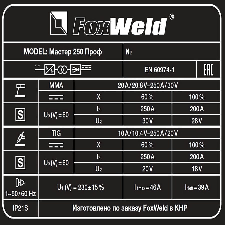 Сварочный аппарат инверторного типа FOXWELD МАСТЕР ПРОФ 250