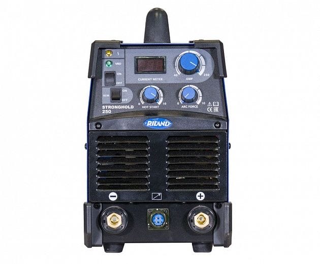 - широкий диапазон регулировки сварочного тока от 40 А для работы с тонкими материалами до 250 А для полноценной работы электродом любых толщин;