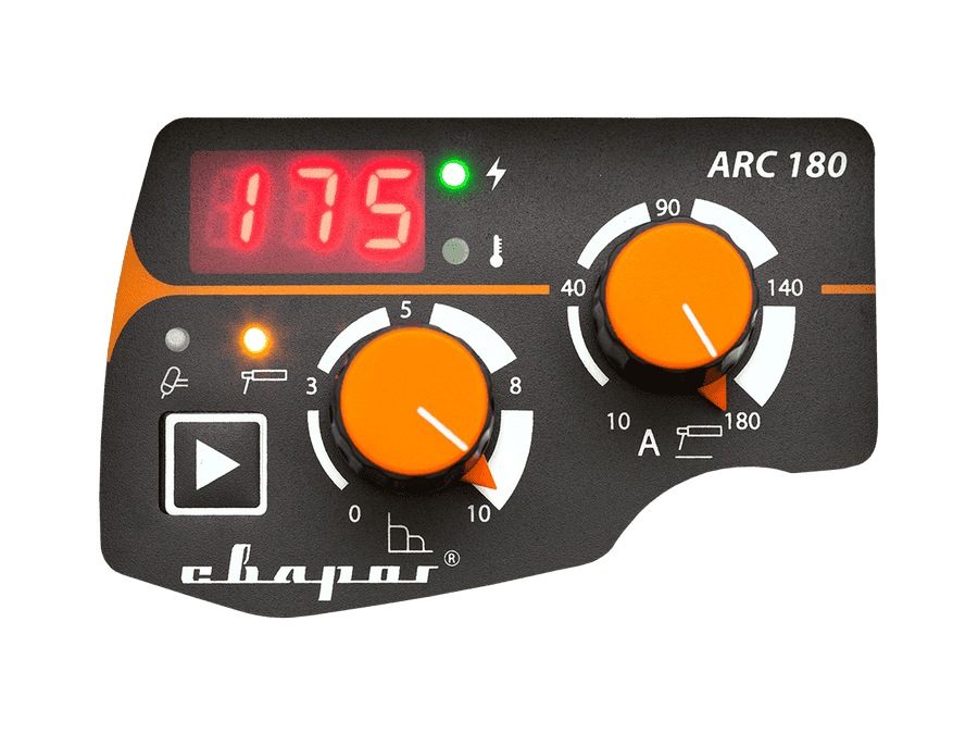 Аппарат PRO ARC 180 имеет удобную систему управления и дисплей для отображения параметров сварки: