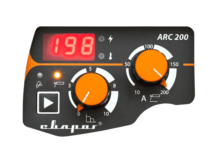 Аппарат PRO ARC 180 имеет удобную систему управления и дисплей для отображения параметров сварки: