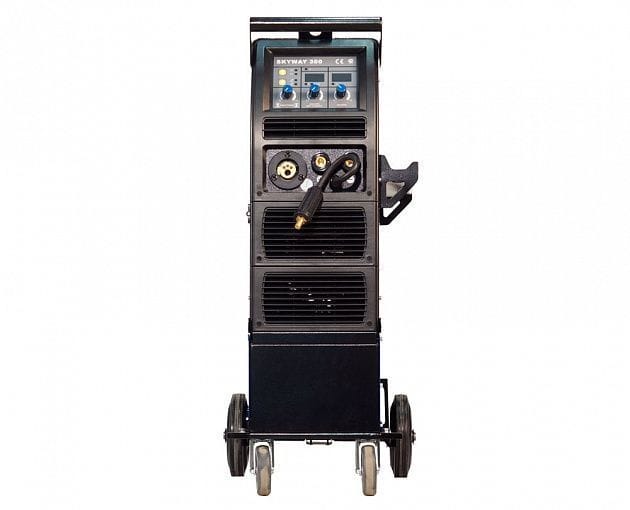 SKYWAY 300 – 3-х фазный инвертор для полуавтоматической сварки стальной проволокой в среде инертного/активного защитного газа MIG-MAG, а также для ручной дуговой сварки штучным электродом MMA. Аппарат выполнен в едином корпусе со встроенным подающим механизмом, рассчитанным для использования катушек D300 (до 20кг). Тележка с подставкой под баллон, отсек для хранения сварочных принадлежностей и инструмента, высокая компоновка аппарата — все эти моменты существенно облегчают работу сварщика. Полуавтоматы серии SKYWAY – это передовая технология инверторного блока IGBT, отличные сварочные характеристики и превосходная эргономика управления. Основная сфера применения аппаратов этой серии – это профессиональный легковой и грузовой автосервис с большим объемом работ.