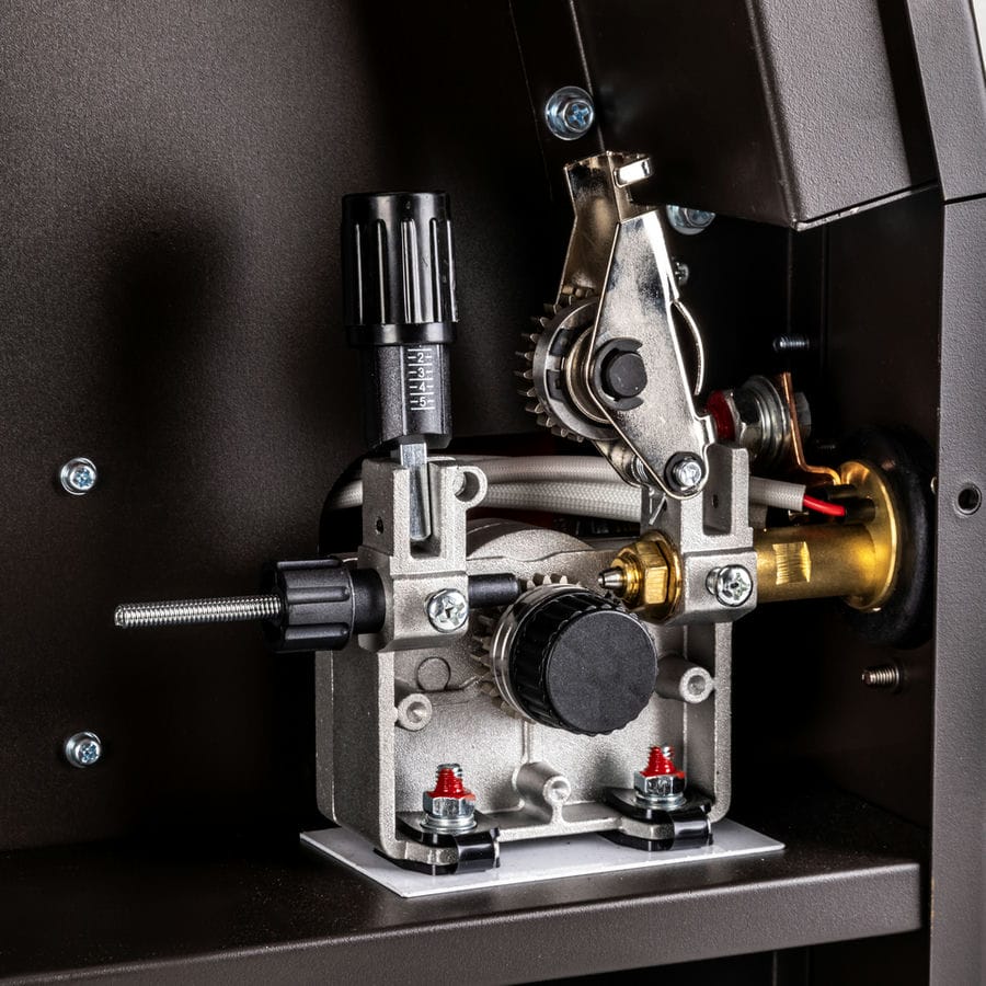 В аппарате используется 2-роликовый полноприводный механизм подачи сварочной проволоки с двумя ведущими роликами. Полноприводный механизм подачи обеспечивает стабильную подачу сварочной проволоки при использовании длинных горелок и при продолжительном сварочном процессе. 2 ведущих ролика – это минимальная деформация и давление на проволоку, что критично для качественной сварки алюминия и сплавов.