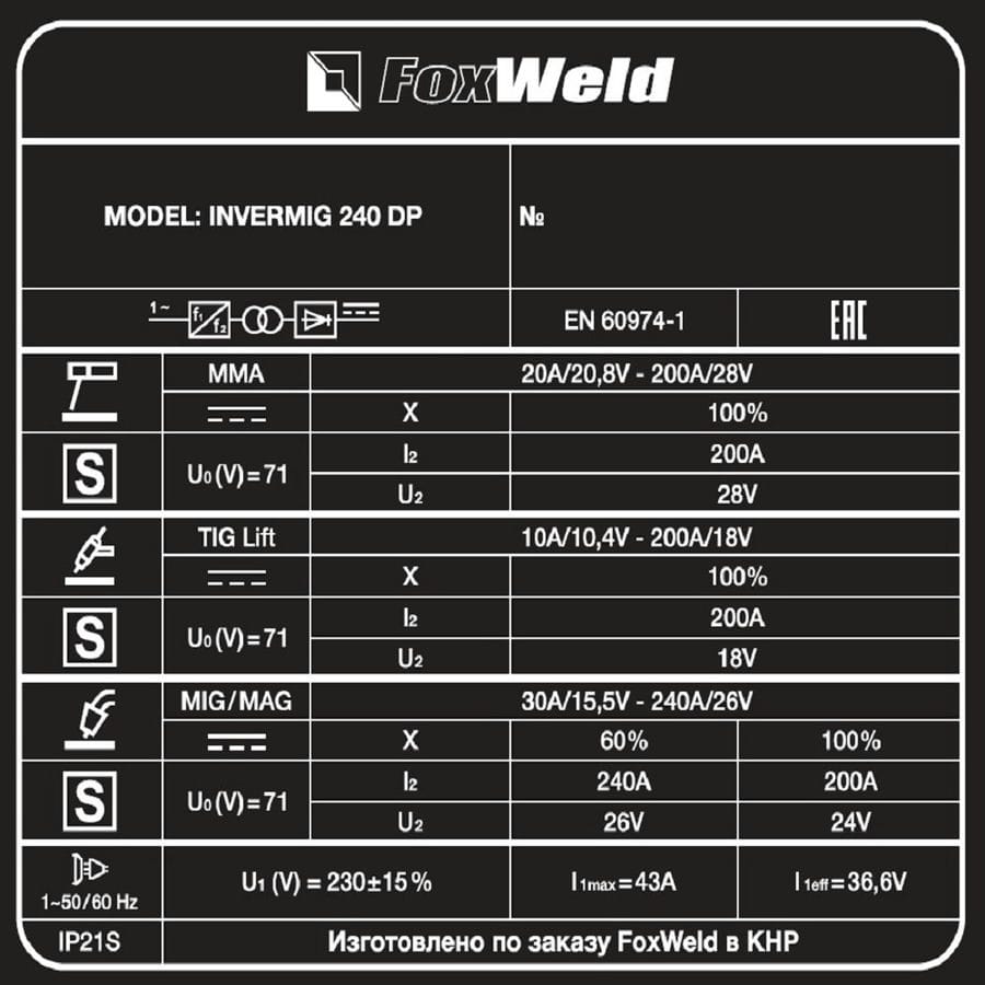 Сварочный полуавтомат Foxweld INVERMIG 240 DP