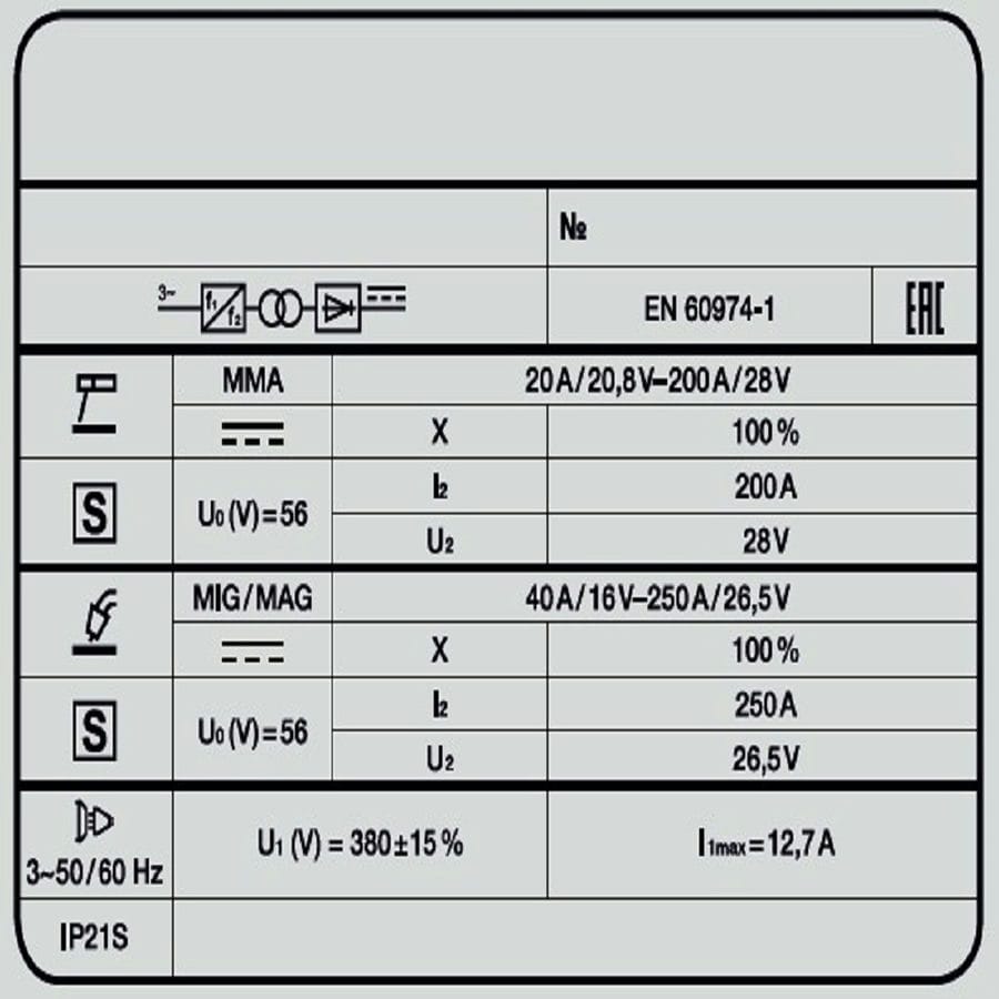 - Продолжительность работы при максимальном сварочном токе составляет 100% (ПВ 100%)