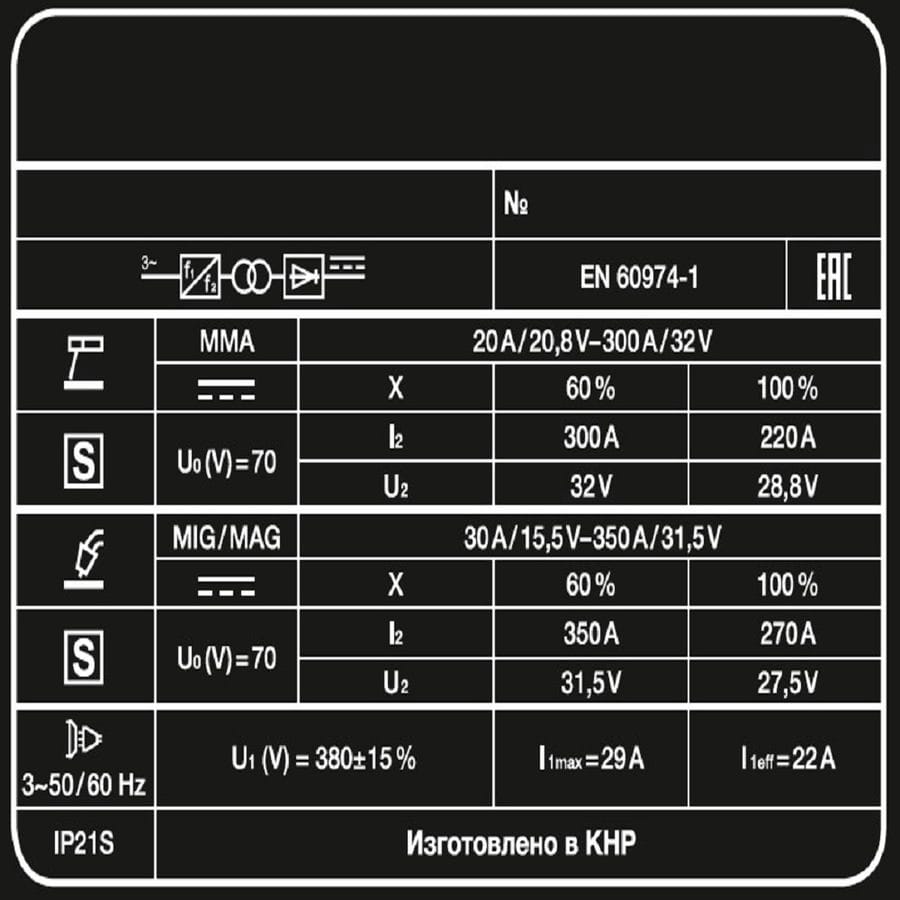 | Максимальный сварочный ток (А) | 350 |