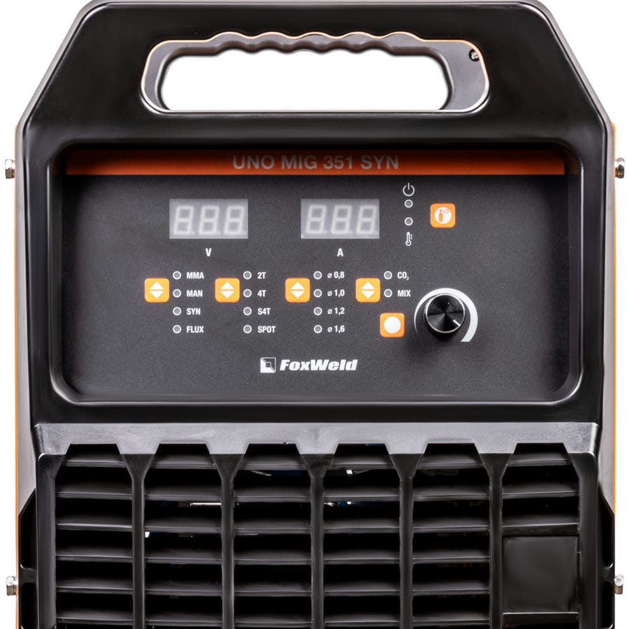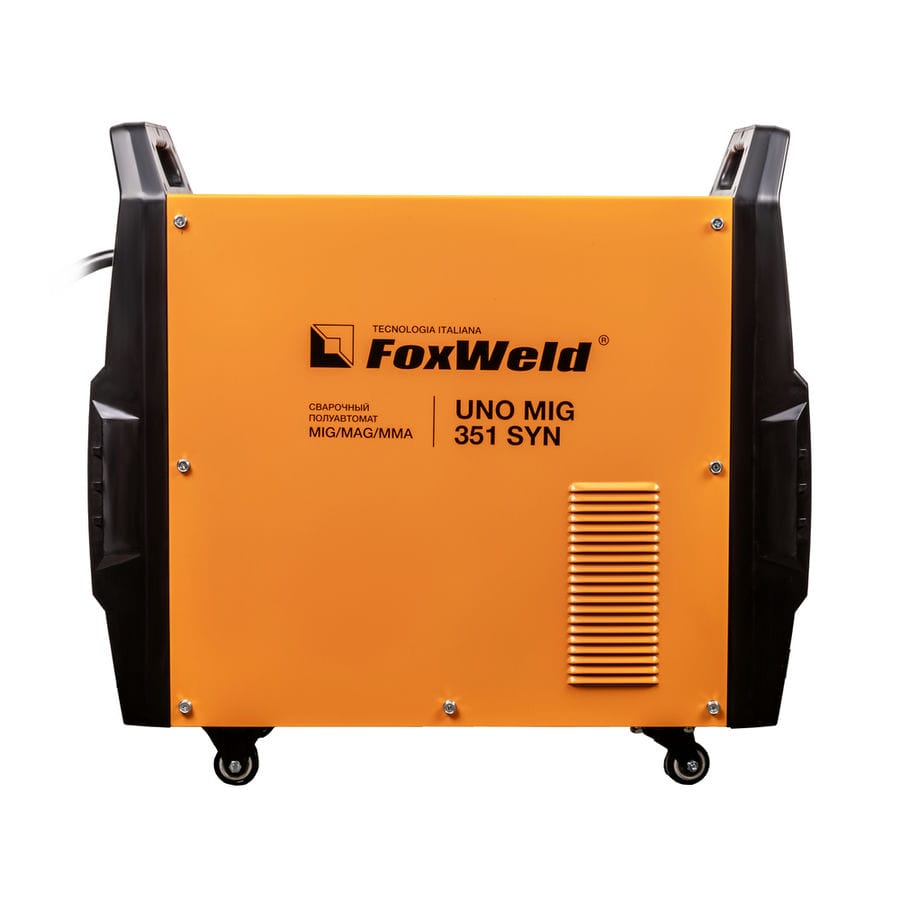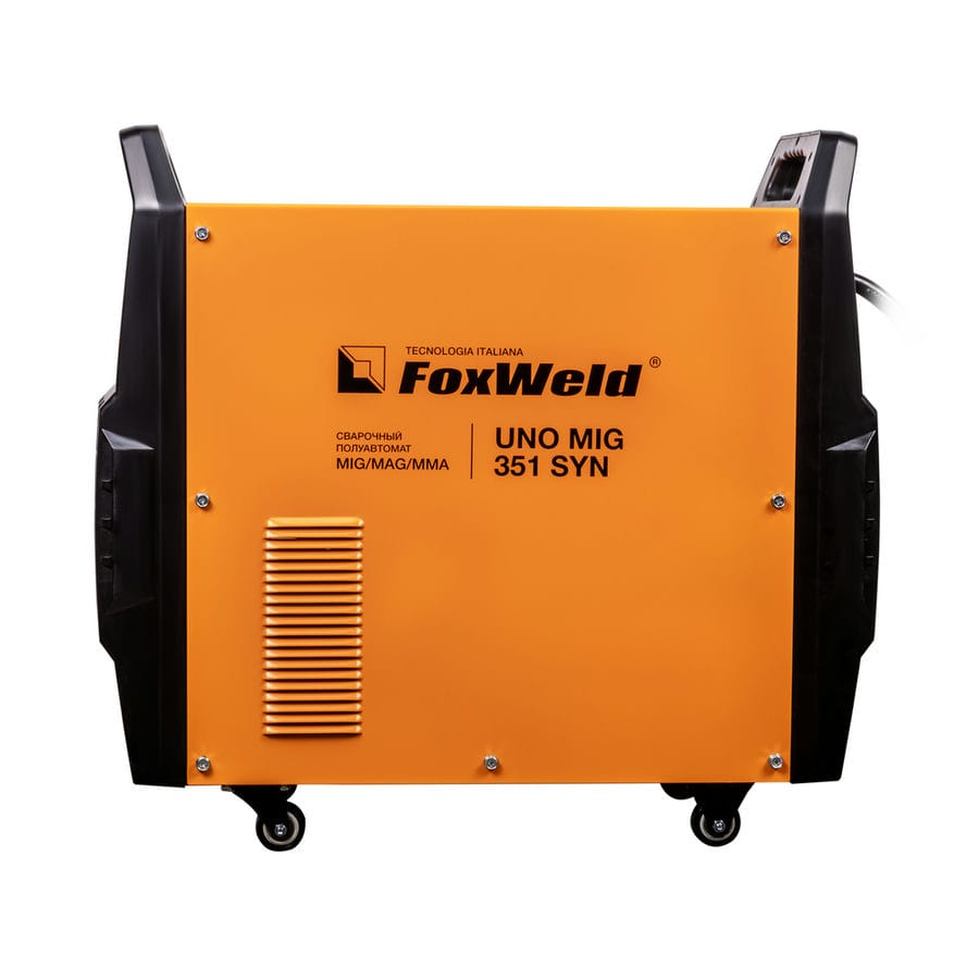 FOXWELD UNO MIG 351 SYN – промышленный/профессиональный трёхфазный инверторный сварочный полуавтомат. Аппарат имеет защиту от перегрузки, индикатор перегрева и неисправности, отличается высокой стабильностью сварки в реальном времени, простым интуитивно понятным управлением сварочными параметрами. UNO MIG 351 SYN с синергетическим управлением предназначен для широкого использования в отраслях по производству металлоконструкций, в сервисных металлоцентрах, при ремонте и восстановлении. Сварочный источник позволяет производить сварку изделий из низкоуглеродистой и легированной стали и алюминия. Максимально надёжная сварочная установка с отдельным 4-роликовым полноприводным механизмом подачи проволоки, двумя мощными ручками на корпусе и колёсами для перемещения идеально подойдёт для рабочего места сварщика. В механизм подачи сварочной проволоки можно установить катушки диаметром D200, D300.