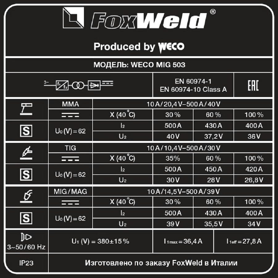 Сварочный полуавтомат FOXWELD WECO MIG 503