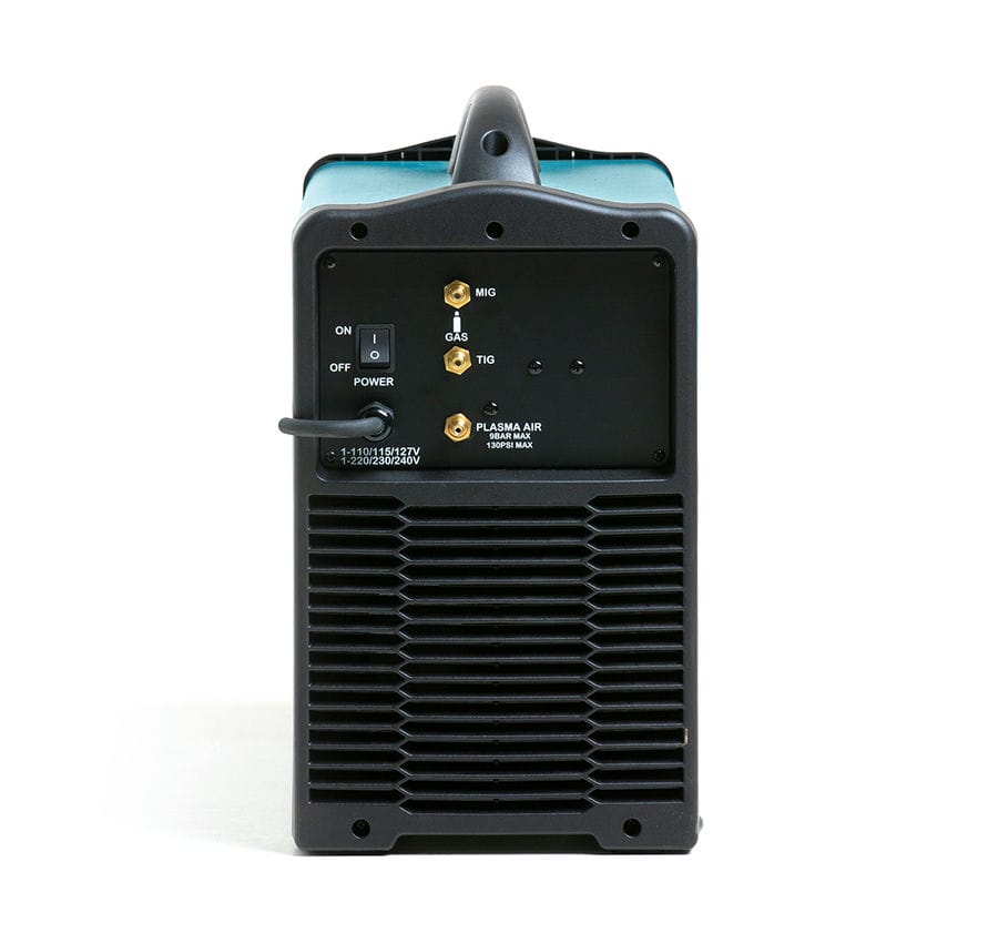 На задней крышке аппарата находятся три 6-ти миллиметровых штуцера для быстросъемного подключения газа и воздуха: к аппарату одновременно может быть подключен газ для MIG сварки, газ для TIG сварки и CUT резки.