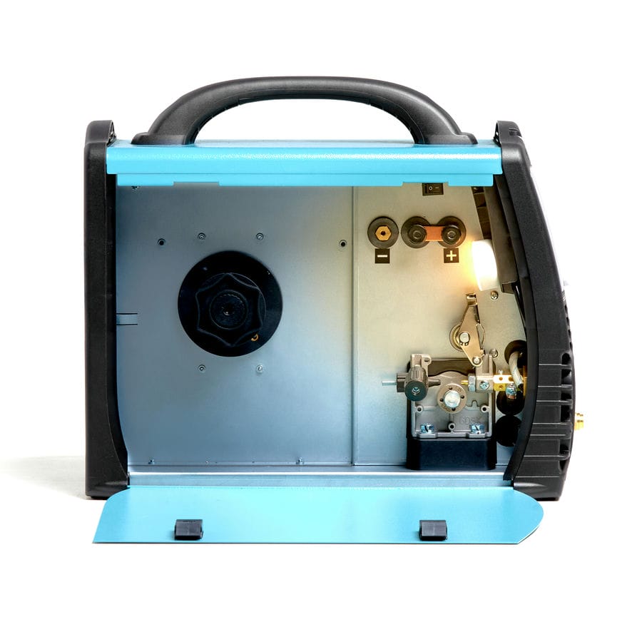 Установлен 2-х роликовый надежный подающий механизм. На задней крышке два 6-ти миллиметровых штуцера для быстросъёмного подключения газа (внутри аппарата установлено 2 отдельных газовых клапана, для MIG и TIG сварки, что очень удобно так как к аппарату одновременно может быть подключено сразу газ для MIG сварки и газ для TIG сварки).