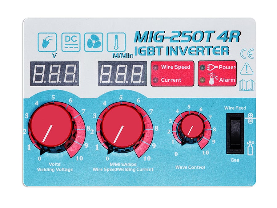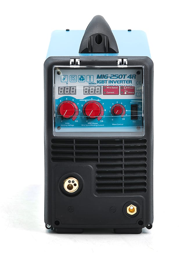 GROVERS MIG 250T имеет 4-х роликовый механизм подачи сварочной проволоки и рассчитан под кассету до 18 кг. Аппарат построен на базе IGBT транзисторов нового поколения по современной инверторной схеме. Данная технология позволяет получать максимальную мощность и длительное включение аппарата при его минимальных размерах и массе. Аппарат имеет дополнительные функции такие как прогон проволоки, дожигание сварочной проволоки и пр. позволяющие более комфортно качественно и безопасно работать на нем. Электронная схема управления включает в себя уникальную систему контроля сварочных динамических характеристик; обеспечивает стабильность горения дуги, низкий уровень разбрызгивания металла, прекрасную форму шва, высокую эффективность сварки!