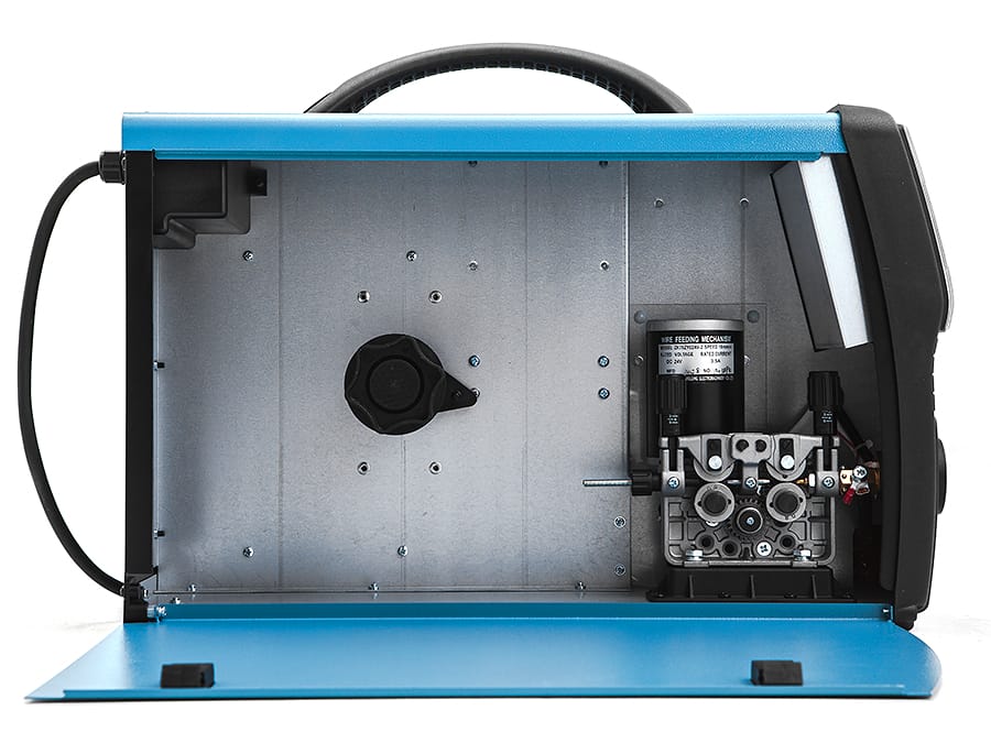 - Мощный 4-х роликовый механизм подачи сварочной проволоки.