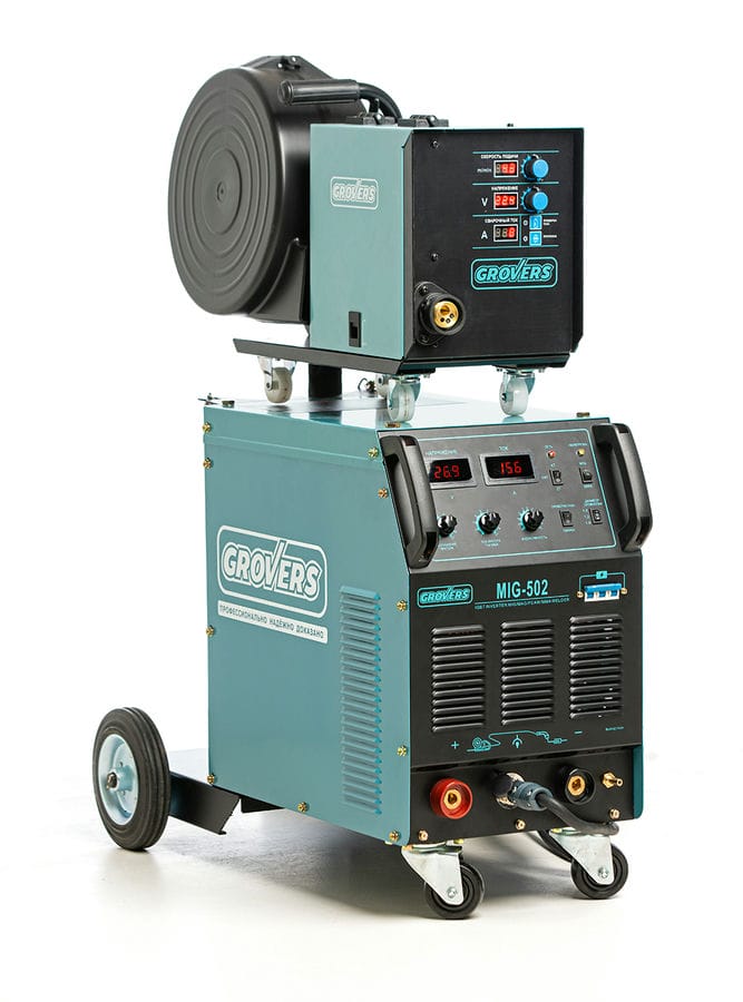 Практичный и мобильный сварочный полуавтомат GROVERS MIG-502 изготавливается в декомпактном исполнении, в корпусе с выносным 4-х роликовым подающим устройством на котором отображается сварочное напряжение , сварочный ток и подача сварочной проволоки. Электронная схема управления включает в себя уникальную систему контроля сварочных динамических характеристик; обеспечивает стабильность горения дуги, низкий уровень разбрызгивания металла, прекрасную форму шва, высокую эффективность сварки. Компоновка аппарата позволяет увеличивать радиус его действия, не передвигая источник питания, выносная ось катушки позволяет применять сварочную проволоку в евро катушках до 18 кг.