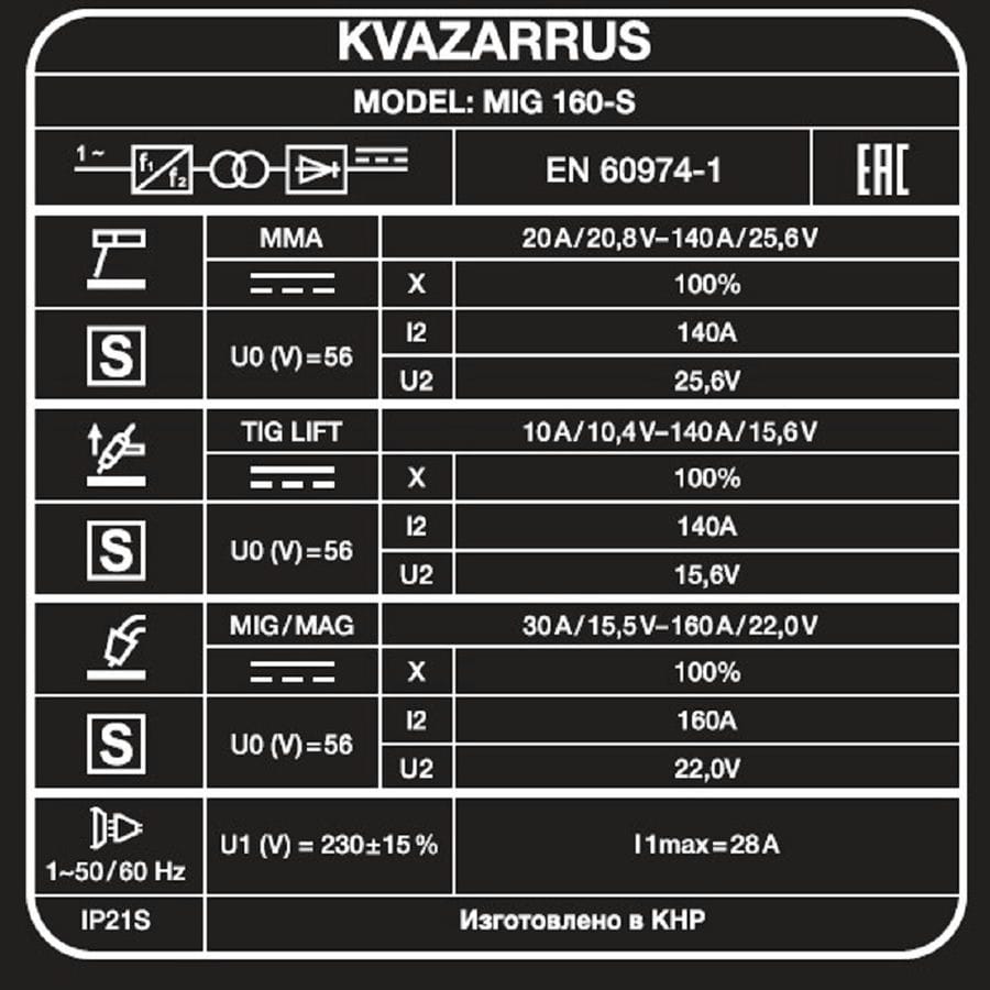 Сварочный полуавтомат KVAZARRUS MIG 160-S