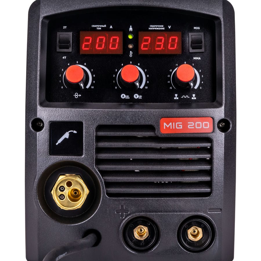 - Два цифровых дисплея для отображения параметров сварочного тока и напряжения