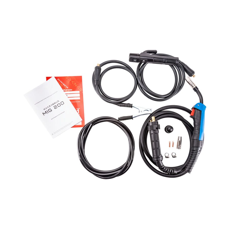 | Комплект поставки | Сварочный полуавтомат KVAZARRUS MIG 200 – 1 шт.; Горелка MIG-15 – 1 шт.; Зажим для заземления 200 А с кабелем – 1 компл.; Элек |