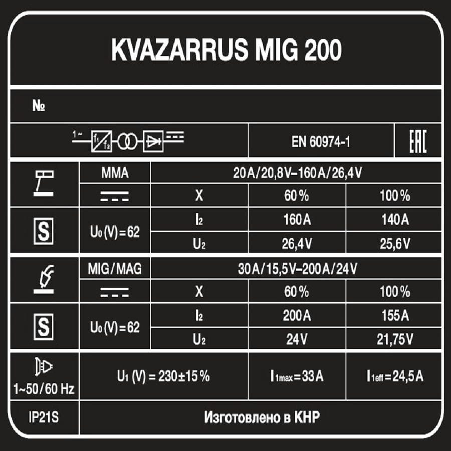 Сварочный полуавтомат KVAZARRUS MIG 200