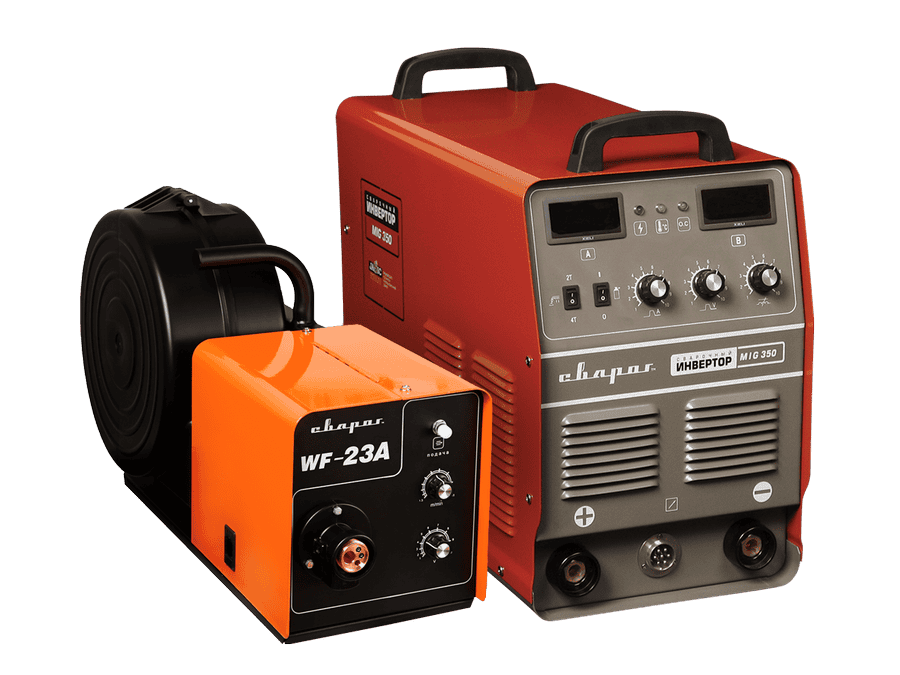 - Инвертор имеет выносной механизм подачи проволоки, что позволяет увеличить радиус выполнения работ, не передвигая источник питания
