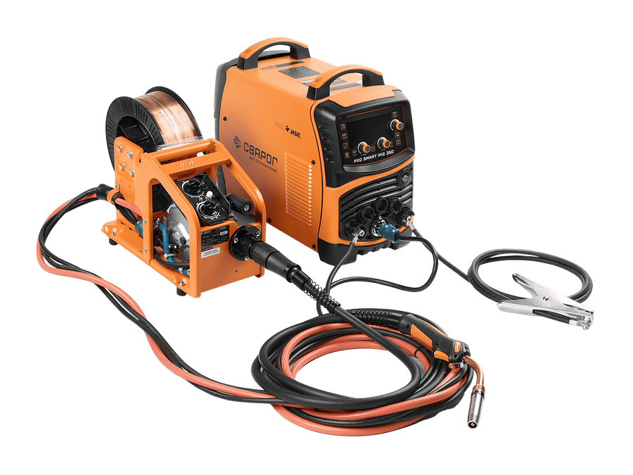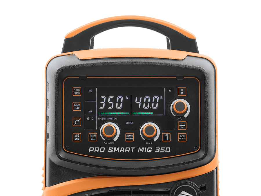 PRO SMART MIG 350 (N216S) — инверторный сварочный аппарат PRO SMART MIG 350 (N216S) предназначен для полуавтоматической сварки в среде защитных газов (MIG/MAG), сварки порошковой проволокой (FCAW), ручной дуговой сварки покрытым электродом (ММА), а также аргонодуговой сварки неплавящимся электродом (TIG DC) при -30 °C.