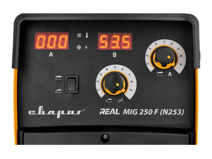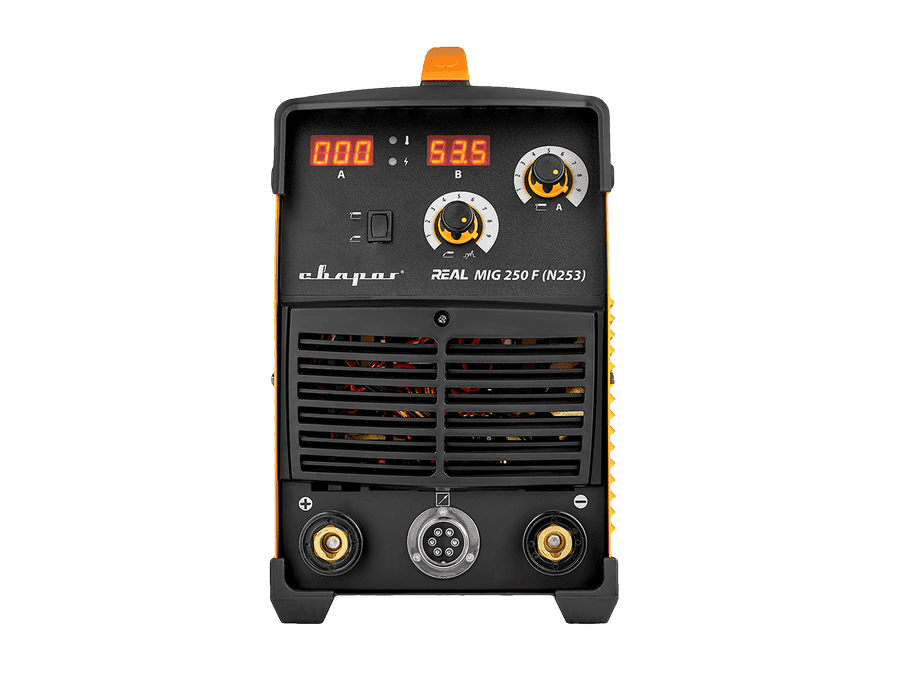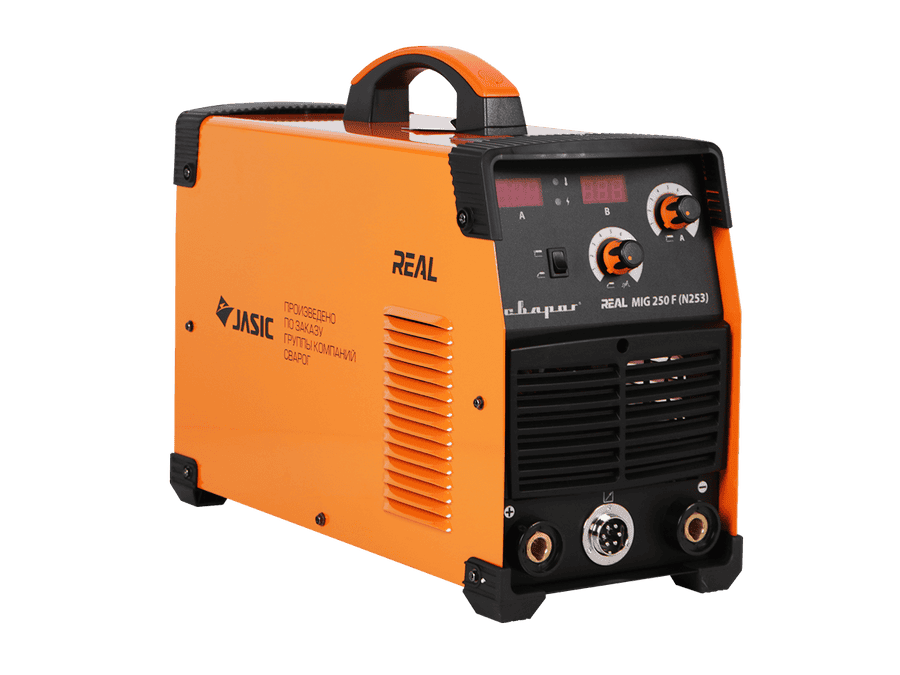 REAL MIG 250F (N253) – инверторный сварочный аппарат для полуавтоматической сварки в среде защитных газов (MIG/MAG), сварки порошковой проволокой (FCAW), а также ручной дуговой сварки покрытым электродом (ММА).