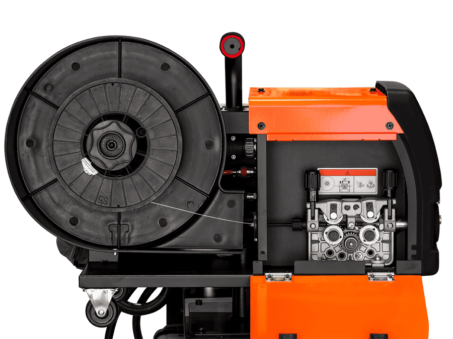 - Мощный четырехроликовый механизм для работы с любыми видами сварочной проволоки диаметром от 0,8 мм до 1,6 мм