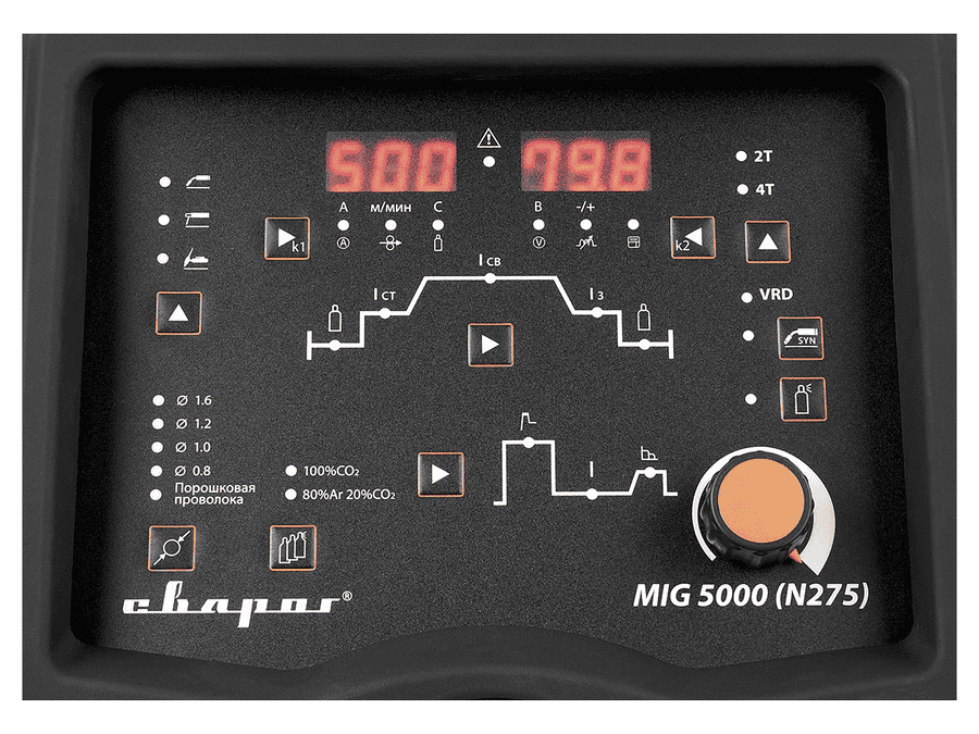- Режимы сварки 2Т/4Т с синергетическими и ручными настройками