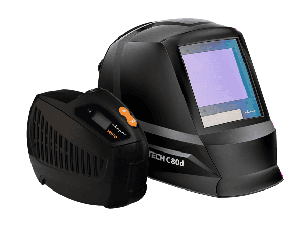 Сварочный щиток Tech C80D с устройством подачи воздуха Vento обеспечивает качественную очистку воздуха благодаря мощному фильтрующему блоку VENTO